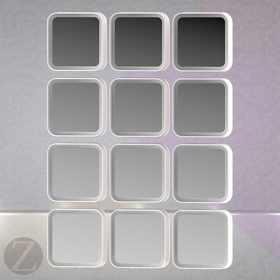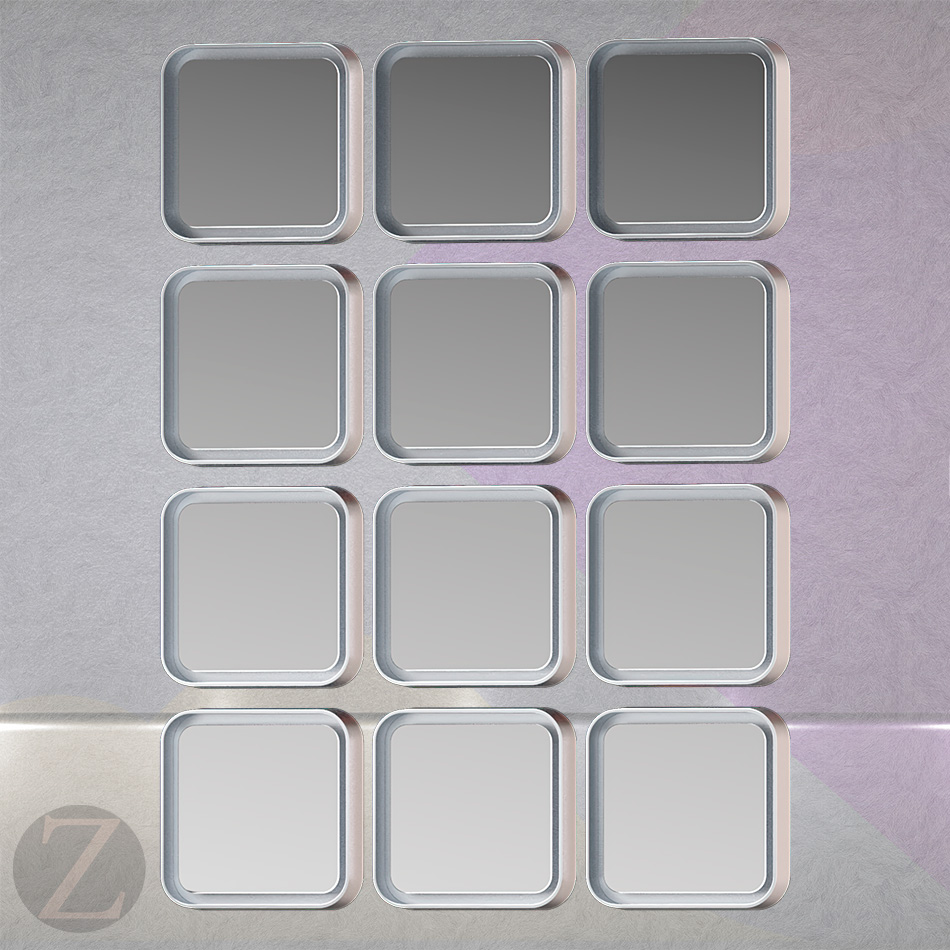 Устанавливается на саму поверхность зеркала и реагирует на прикосновение к нему. Он выполнен в форме квадрата. Стандартное расположение сенсора середина нижней части зеркала.