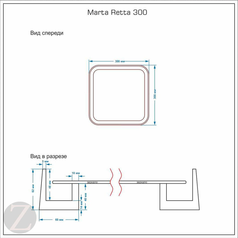 Зеркало квадратное Marta Retta 300*300mm
