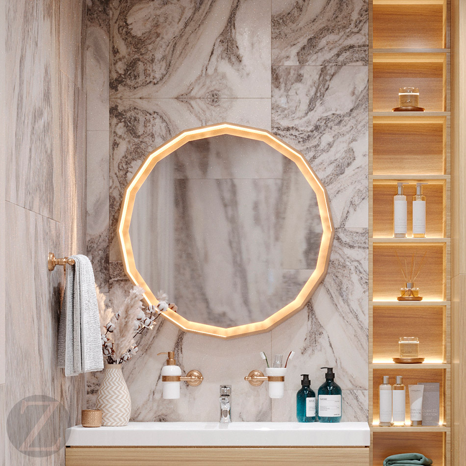 Данное подсвечивание зеркала служит для повседневного ухода за лицом и нанесения декоративной косметики.