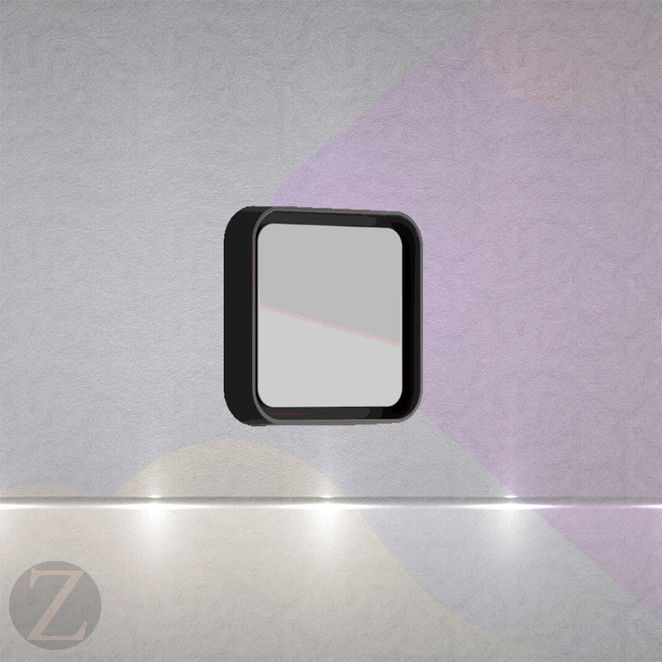 Устанавливается на саму поверхность зеркала и реагирует на прикосновение к нему. Он выполнен в форме квадрата. Стандартное расположение сенсора середина нижней части зеркала.