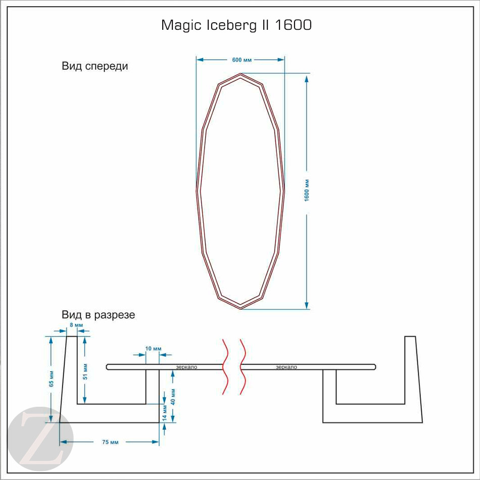 Зеркало овальное Magic Iceberg II 1600*600mm